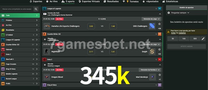 A aposta 345k oferece aos jogadores a experiência mais conveniente de apostas em eSports!